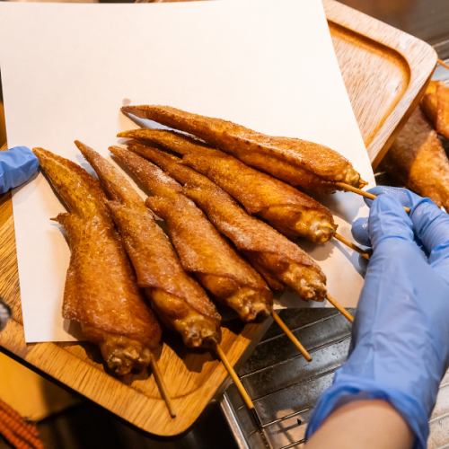 普通に食べても美味しいですが、手羽いちずの手羽先はおすすめの食べ方があります!両手を使って骨を引き抜いてガブっとまるごと食べると、さらに美味しくお召し上がれます♪外はサクッと、中はジューシーな『名物手羽先』を食べ方も含めてお楽しみください☆初めての方は、店舗スタッフまでお声かけください!
