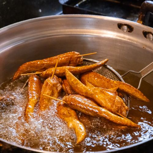 独特の塩気と香ばしさ、ジューシーでやわらかいお肉の旨みがたまらない自慢の「手羽先」は、やみつきになると評判の看板メニュー。シンプルな味付けが肉の旨味を引き立てる「秘伝の塩」5本と、スパイシーな香りが食欲をかきたてる「カレー塩」5本のセットで飽きさせません♪